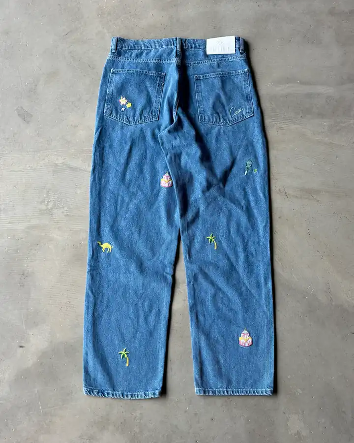Desen Nakışlı Baggy Kot Pantolon
