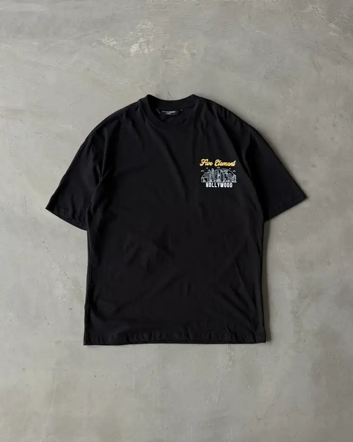 Sol Göğüs ve Arka Baskılı " Hollywood " T-Shirt