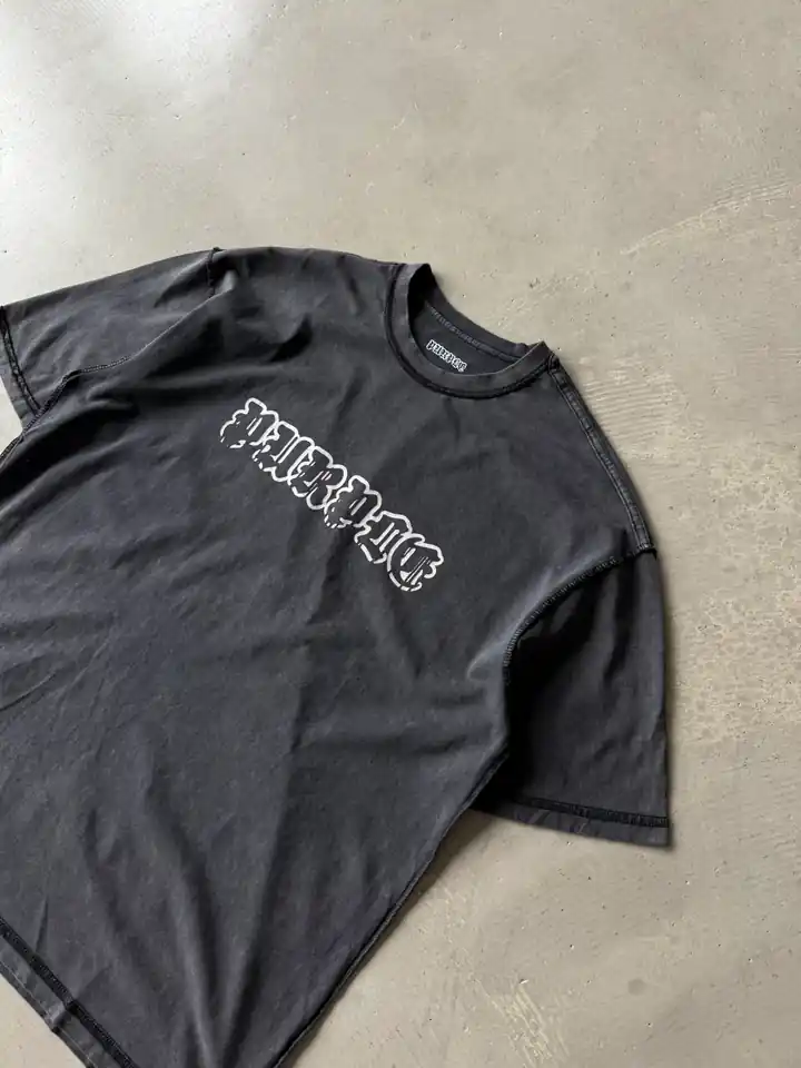 Göğüs Baskı Yıkamalı Basic T-Shirt