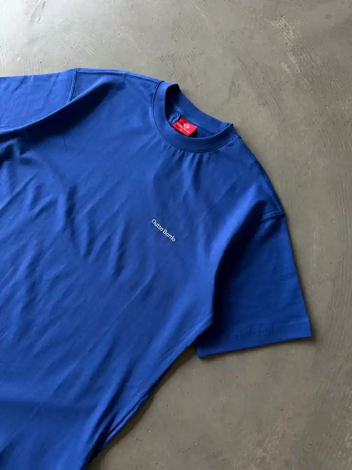 Mavi Göğüs Nakışlı Basic T-Shirt